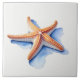 Starfish and Blue Silhouette Ceramic Tile