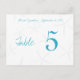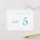 Aqua starfish table number cards. Beach wedding, double-sided seating cards with a template for adding bride and groom names, wedding date and table numbers. The center is white with blue numbers.