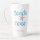 Blue and coral typography Beach House coffee latte mug that you can personalize with your name, business or date of establishment. Design from Jenn's Emporium.