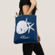 Carry your books and water to the beach, or personalize this tote bag for a wedding, event, or gift. The design features a white sand dollar and 2 starfish on a navy blue background.