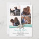 Starfish and ribbon beach destination wedding save the date with four photo, block frames. Modern and romantic photo layout with aqua, turquoise ribbon and starfish design and clean minimalist white background.