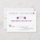 Boarding pass RSVP card to match the Starfish Wedding Boarding Pass invitation. COLORS ARE PURPLE AND TAN. Contact me if you have more cards you want with your invite (i.e., itinerary, accommodations, invitation etc) If the color scheme is not what you wanted please let me know and I'll recreate that for you. paula@labellarue.com Please make sure you proof your design before submitting your order. If you have questions regarding the design please let me know and I'll be happy to assist you regarding the design however once the order is submitted you will need to contact Zazzle's customer service. Thank you! BE SURE TO PICK YOUR FAVORITE CARDSTOCK TO HAVE IT PRINTED ON!