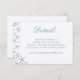 Wedding details card with starfish border. Text is light blue and is shown on upgraded champagne shimmer paper. Light blue and gray sea stars are “falling” down the left edge of small enclosure cards that have size selection.