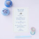 Starfish couple menu template for a seaside wedding reception. Pale gray-blue with dark blue text, this affordable menu template has two sea stars at the top to represent the bride and groom. Also use the lines of text to include the date and location of event, the menu title - for the occasion - and easily add all food selections in paragraph form. Use spaces where needed to even out the wording. Text is modern printed calligraphy font style. A thin beige line border surrounds the text and the design looks best on this size paper. At least 25 menus must be ordered at one time.