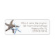 White return address labels with two starfish and printed, brown text. Skinny labels will hold up to four lines of custom text. A brown and blue pair of sea stars decorate the edge.