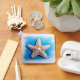 An illustration of an orange starfish with a blue sketch background. The starfish looks like it is inside water in this illustration.