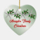 Heart shaped, tropical Christmas ornament with starfish and a photo template. Add a square picture to the photo holder template on the front and personalize text in red and green.