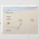 Beach wedding program with starfish couple and heart in sand background image. This ceremony program template will be folded by the customer to create a tri-fold, accordion fold, z-fold program. Add the "order of ceremony" and "wedding party" list to the center and right side after carefully typing it up on a word program or other place where you can check for errors. Then add it to the templates. NO ONE will proofread your text!