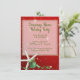 Holiday office party invitations with starfish and ornament design. Red and green colors with place for company name at the top and all party information in the paragraph beneath. Twinkling stars on red is the background with a large white sea star at the bottom next to a green tree ornament with ribbon. Handwritten text is also green and is printed over a transparent white panel that shows the stars underneath. Use spaces as needed to even out the lines of text. The top template will hold one or two lines of text. This is the smaller 4x6 size, with other sizes available.