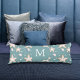 Green, dark cyan colored background decorated with orange starfish and jellyfish. Personalize and add your name. Large white hand lettered style script.