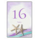 Starfish and lace with turquoise and orchid ribbon printed design, table number card to compliment our beach theme invitation set, can be personalized and ordered individually. Printed design, no real lace or ribbon attached.