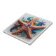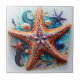 Whimsical starfish of orange and blue hues with white background. Perfect for your beach house's coffee table or bathroom!
