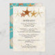 Dinner Menu cards for formal wedding receptions, bridal showers or your business events. COLOR PALETTE: turquoise, aqua blue, cream, tan, red, and brown. DESIGN COLLECTION: A wedding invitation set with complete product ensemble for all your needs. These beautiful coastal beach gathered, ocean growing seashells, sea shells were hand watercolored by Audrey Jeanne Roberts and are delicately rendered with great detail. There are several varieties of starfish, a scallop shell, and the inside view of a Nautilus shell. A variety of starfish have been delicately rendered with great detail as the dance across the top and sides of each of these wedding invitation set items. Easy to customize and personalize these invitations with your personal invite event text by using the easy template fields. Perfect for a chic, beachy styled destination wedding by the ocean, in the Caribbean, Mexico, the tropics or at the shore.