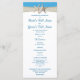 Starfish and the rustic look of burlap printed rack card wedding programs accented in tropical blue to compliment our "Beach Amore'" ocean wave wedding set.
