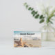 Business cards with a scenic photo. A big starfish set upright on a sandy beach. A beautiful blue sea with waves of white surf in the background.