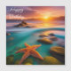 orange Starfish in a tidal pool as the sun rises in the distance