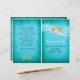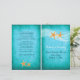 Starfish pair and veil turquoise tropical destination beach wedding ceremony and party folded program featuring a couple of orange starfish on a white waved veil on turquoise blue and teal grunge stained background. This modern aqua wedding design is part of a wedding set or wedding collection and is a fully customizable template perfect for a destination beach summer wedding. You will have to fold it in the center. Choose only this type of paper-value as it folds well.