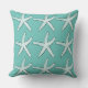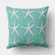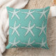 Starfish Pattern Beach Coastal Teal Blue Cotton Throw Pillow