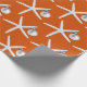 Starfish Christmas wrapping paper with white starfish / sea stars and ornaments design. Orange paper is high quality and comes on a roll with several length options.