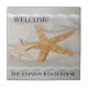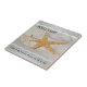 Tile featuring two starfish on the sand with a wave design. Beautiful for a beach house, coastal home or beach style interior.