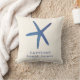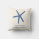 This beach house theme throw pillow features a blue starfish design on the front of the pillow - along with your personalization. The backside is an ivory pattern with a beach seashell pattern design. A cute pillow that gives you two different looks so you can change up your decor from day to day.