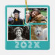 Turquoise Christmas ornament with starfish design and four photo templates. This flat, square tree ornament lets large families share more photos in a small package. The tropical theme is blue-green and white. Big numbers on the front for the year are below the four photos. A white sea star pattern decorates the back with wording which could include a greeting, names, or anything that fits the space. The personalized ornament makes a wonderful gift for relatives, or create one for a boyfriend / girlfriend.