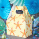 Pattern of starfish paintings on textured yellow background.