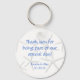 Starfish keychain wedding favors. Personalize with bride and groom names and wedding date. Blue and white beach themed guest thank you favors.