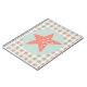 A cute, fun, whimsical, and colorful blue and coral starfish design on items for the home, office, and personal use including electronic device cases, mousepads, cheese trays,gift bags and boxes, throw pillows, dry erase boards, buttons, keepsake ornaments, bags, paper plates and napkins, candy favors, desk organizers, and so much more.