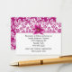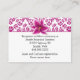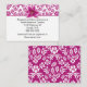 Pretty wedding information enclosure card, with a violet pink on white floral damask pattern, across the top and covering the back, and a lovely stargazer lily bloom, on the top front. The white text area, has black text ready to personalize for your special day. Matching products are available.