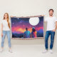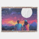 A beautiful digital painting of a couple sitting on a rooftop at night, gazing at the stars. The sky is filled with stars of all colors, and the Milky Way is visible in the distance. The couple is sitting close together, and they look like they are enjoying each other's company and the beauty of the night sky.