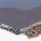 A quality printed throw has its advantages. This is a much finer weave throw than its loopier cousins, and though lighter, it is worth the investment for custom room accessorizing. The back is much prettier than the typical brown, and the fringe on the long sides very vivid, the selvage nicely done. Before photographing, I washed the throw in cold water, delicate, with a thicker woven throw the same size. On tumble dry low, this throw was dry in half the time as the other. This is a very practical quality if you use throws for furniture covers or to wrap up in frequently. The sleekness of the fabric makes it a great layer for accenting or protecting without the feeling of sitting on too much stuff. Perfect for napping or when you feel a light chill coming on. The color printing is beautiful and on this fabric, matched the design and color of my Photoshop image. This is an advantage for blending room fabrics and colors. The fringe on the short sides prints the colors from the design image and therefore varies from the side fringe. I streaked a white fractal line through the plaid pattern to give the illusion of weaving. This printed as crisp as an illusory thread, and put some white in the short side fringe, showing another advantage of print vs loomed- for artistic purposes, line lines, detail, and color integrity can be planned and preserved. My loomed throws have color limitations and more of a needlepoint texture. Print throws reproduce an exact image. The throw felt a little stiff straight out of the package, but this went away in the first delicate wash. Of course I searched the wash water for ink or bleeding and there was none.