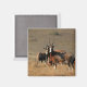 Painting of an African blesbok herd in a field, staring blankly at the viewer with their expressionless white faces on a square refrigerator magnet.