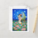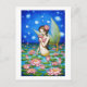 Beautiful koi mermaid in pond surrounded by pink lilies and stars shining up above.