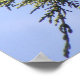 This print features a photograph of a starling sitting in a spruce tree. The bird has a beady eye and its feathers glisten in the late afternoon sunshine. The beautiful blue sky provides a stunning background. A great gift for nature and animal lovers as well as for bird watchers.