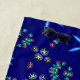 This artwork features a vibrant and symmetrical abstract pattern set against a deep indigo blue background. The design combines floral and geometric elements, with luminous petal-like shapes arranged in radial formations, resembling stylized flowers or starbursts. These petals glow in shades of electric blue with subtle green outlines, creating a dynamic sense of depth and energy. Scattered between the larger motifs are small clusters of iridescent, bubble-like orbs in rainbow hues - red, teal, pink, and green - adding a playful and futuristic touch. At the center of the composition is a kaleidoscopic mandala-like formation made up of these same glowing spheres, anchoring the design and enhancing its hypnotic symmetry.