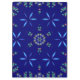 This artwork features a vibrant and symmetrical abstract pattern set against a deep indigo blue background. The design combines floral and geometric elements, with luminous petal-like shapes arranged in radial formations, resembling stylized flowers or starbursts. These petals glow in shades of electric blue with subtle green outlines, creating a dynamic sense of depth and energy. Scattered between the larger motifs are small clusters of iridescent, bubble-like orbs in rainbow hues - red, teal, pink, and green - adding a playful and futuristic touch. At the center of the composition is a kaleidoscopic mandala-like formation made up of these same glowing spheres, anchoring the design and enhancing its hypnotic symmetry.