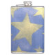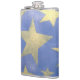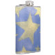 This flask features a stencil of Golden stars on a blue background.