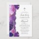 Starry Blue Pink Agate Silver First Holy Communion Invitation