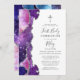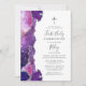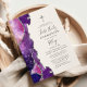 Starry Blue Pink Agate Silver First Holy Communion Invitation