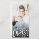 Starry Cheers White Brush Script Bold Calligraphy New Year Holiday Photo Card.