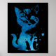 This design features a charming kitten with a gaze full of wonder, set against a backdrop of whimsical stars. The watercolor texture in shades of blue adds an artistic and dreamy quality to the image, perfect for cat lovers and dreamers alike.