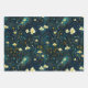 Starry Garden Blooms Blue, Gold Floral Decoupage Wrapping Paper Sheets