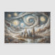This dramatic cityscape reimagines Manhattan beneath a Van Gogh-inspired celestial dance, where spiral galaxies and luminous stars swirl above iconic skyscrapers. The composition masterfully balances the architectural precision of New York landmarks with dreamlike atmospheric elements, while the autumn-touched shoreline adds warmth to the steel and glass metropolis.