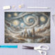 The piece's sophisticated palette weaves together celestial blues, cosmic golds, and urban silvers against ethereal clouds, creating an atmosphere of magical urbanity that will transform any furniture piece into a portal to an enchanted cityscape.