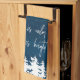 This starry night "all is calm all is bright" Christmas kitchen towel is the perfect religious holiday baking accessory. The design features a winter forest scene with a navy watercolor sky and a brightly shining star of bethlehem.