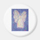 The art shows a soft pastel angel against a soft blue starry night background. The image was initially painted with acrylic and then finished in pastel to create soft luminous color.