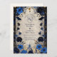 Elegant and mysterious, this midnight blue and gold celestial wedding design features deep sapphire blooms, shimmering golden leaves, and moon-and-star accents for a romantic cosmic touch. Perfect for an evening celebration under the stars.
