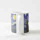 Starry Night by Vincent van Gogh is a vintage fine art post impressionism landscape cityscape painting featuring a view of Saint Remy, France from van Gogh's asylum. The night sky is swirling with clouds with a bright crescent moon and shining stars over the quaint village. Starry Night is probably van Gogh's most famous painting and was painted during the day from memory.