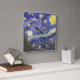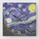 Starry Night by Vincent van Gogh is a vintage fine art post impressionism landscape cityscape painting featuring a view of Saint Remy, France from van Gogh's asylum. The night sky is swirling with clouds with a bright crescent moon and shining stars over the quaint village. Starry Night is probably van Gogh's most famous painting and was painted during the day from memory.
